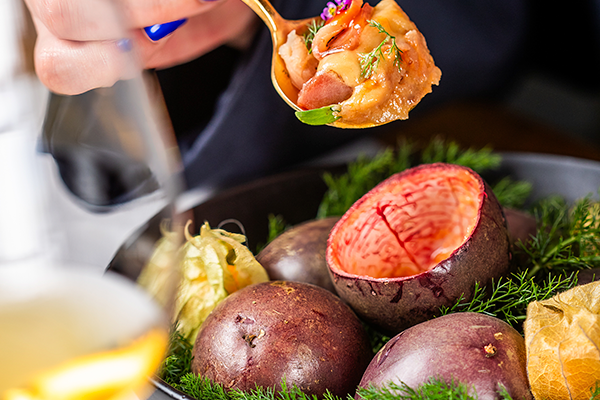 O Menu Inovação, pensado para os apreciadores de uma cozinha criativa, utiliza produtos locais e singulares que nos levam a viajar pelo território nacional, apresentando aquilo que consideramos a verdadeira expressão da nossa gastronomia.